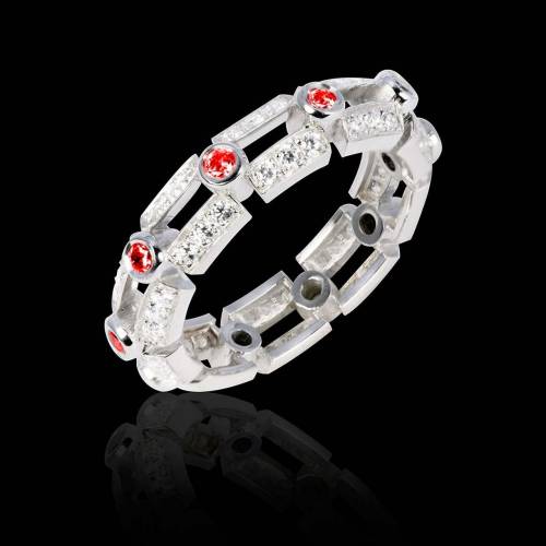 Bague rubis en or blanc 18k (5,3 g)  composée de deux anneaux pavés (1,07 carats)