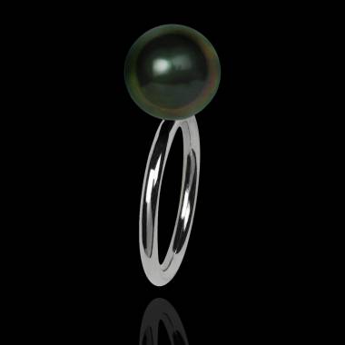 Bague en or 18 K (2,7 g) et perle de Tahiti 10 mm